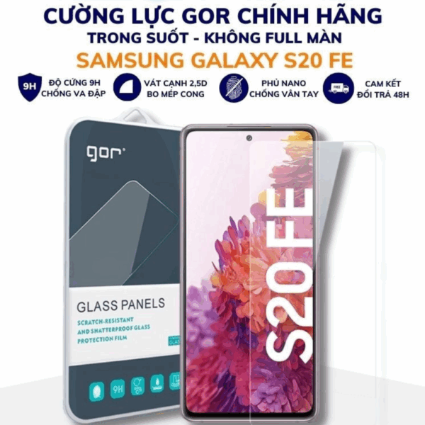 Kính cường lực Samsung S20 FE trong suốt Không full màn chống bám vân tay chính hãng Gor