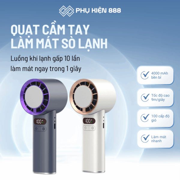 Quạt Cầm Tay Làm Mát Sò Lạnh – Gập Gọn, 100 Cấp Gió, Pin 4000mAh
